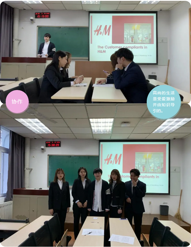 *难忘的莫过于大家一起拼搏、一起努力的日子。印象很清晰的是在大二*后一节商务沟通课上,大家分成小组进行演讲。前期的准备工作我们需要收集大量的资料,对着整理好的文件还要一次又一次的进行练习,以求达到熟练。那次是*一次大家分工协作完成一项任务,还要一起做正式的报告演讲。按照要求大家身着正装进入教室,严肃认真的用英文讲演着报告内容。在老师的提醒下,小组成员机智的做了关于主题的提示卡片来指导整个流程。