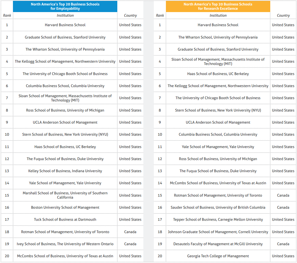 北美地区,毫不意外两份榜单都被美国大学商学院霸占,加拿大大学商学院也有不少上榜!哈佛大学商学院强势占据双榜榜首,宾夕法尼亚大学的沃顿商学院和斯坦福大学商学院在两份榜单分别位列二三。加拿大的多伦多大学商学院在两份榜单中都进入TOP20。
