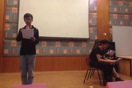 接下来是A Level2015秋季3班的陈晓飞演唱的《K歌之王》,与开场舞的激情截然相反,他的声音深情安静,具有穿透力。同样深入人心的还有A Level 2015秋季3班的纪兆中和钱少卿带来的《红日》,虽然有略微的紧张,但还是非常棒,博得满堂喝彩。以及2014秋季3班的柳群演唱的《回头太难》,一样获得好评。