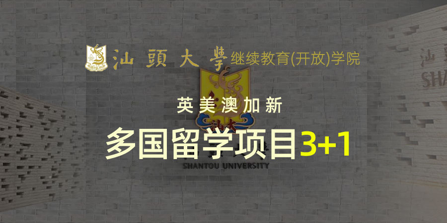 为满足学生出国留学需求,拓展学生国际视野,提升学校国际化办学水平,汕头大学充分利用已有的海外关系,与国外多所知名大学建立了合作关系并开办出国留学项目。项目依托汕头大学优质的国内外教育资源,通过对已有国际合作办学项目进行优化,引入英、美、澳、加、泰等国多所国外知名大学的优质项目,建立国内学习与国外学习相结合的国际化人才培养模式。办学专业涵盖了数字媒体与艺术设计、国际时尚管理、企业管理、经济学、国际商务等特色鲜明的商科和艺术类专业。继续教育学院负责出国留学项目具体办学及管理工作,为项目提供运作指导。学生在汕头大学进行语言课程、通识教育课程和学科基础课程等学习,成绩符合国外合作院校要求且被录取者,将赴国外合作院校继续学习,毕业后可获国外院校颁发的相关文凭。